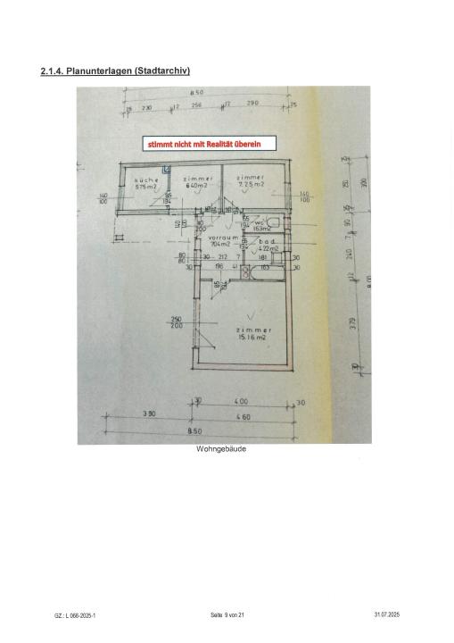 Wohnhaus ist nicht unterkellert und verfügt über einige weder plan- noch bescheidmäßig